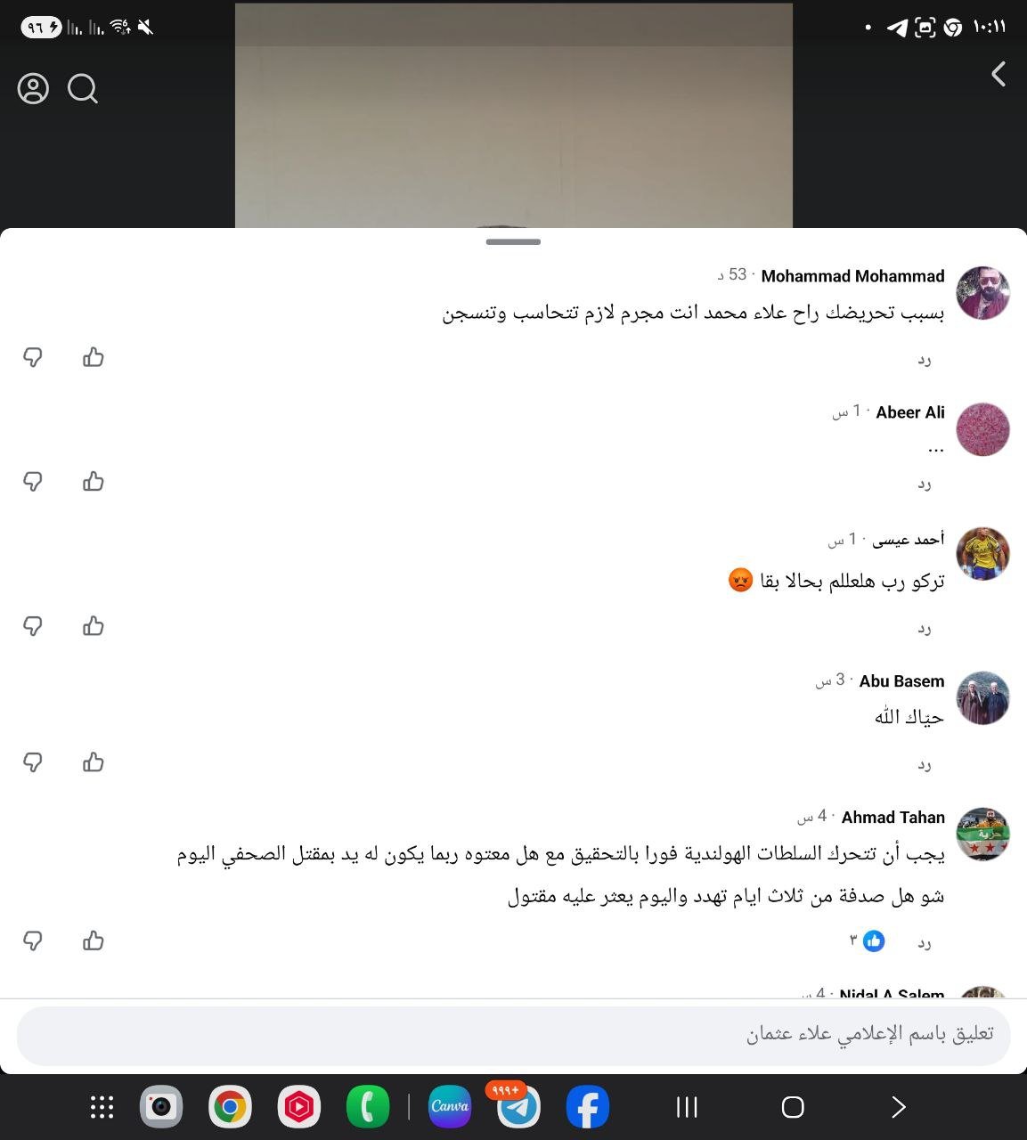 هجوم قوي من الناشط علي الملا والمقيم في هولندا على الصحفي علاء محمد قبل يومين من مقتله يثير جدلاً واسعاً